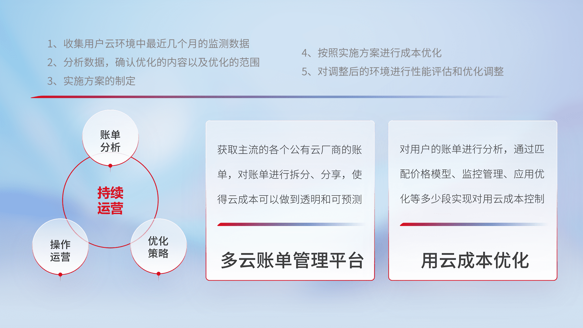 运用智能化工具分析云资源,,提供日常费用可视化工具,,自动账单拆分,,,,成本优化云上费用,,,,降本增效。。